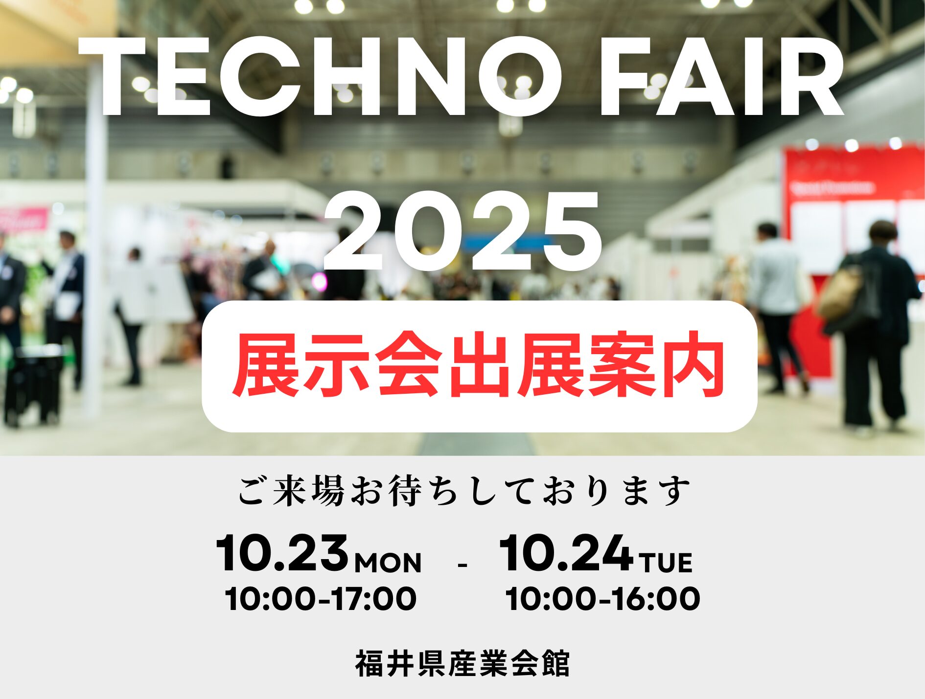 TECHNO FAIR 2025 出展のお知らせ株式会社野口製作所は、2025年10月23日(木)~24日(金)に福井県産業会館で開催される「TECHNOFAIR2025(テクノフェア2025)」に出展いたします。今回、福井県での展示会は初出展となります。展示会サイト:北陸技術交流テクノフェア2025当社は、深絞りを中心とした精密プレス加工や、樹脂成形加工など、金属と樹脂の両分野で“小物・微細…
