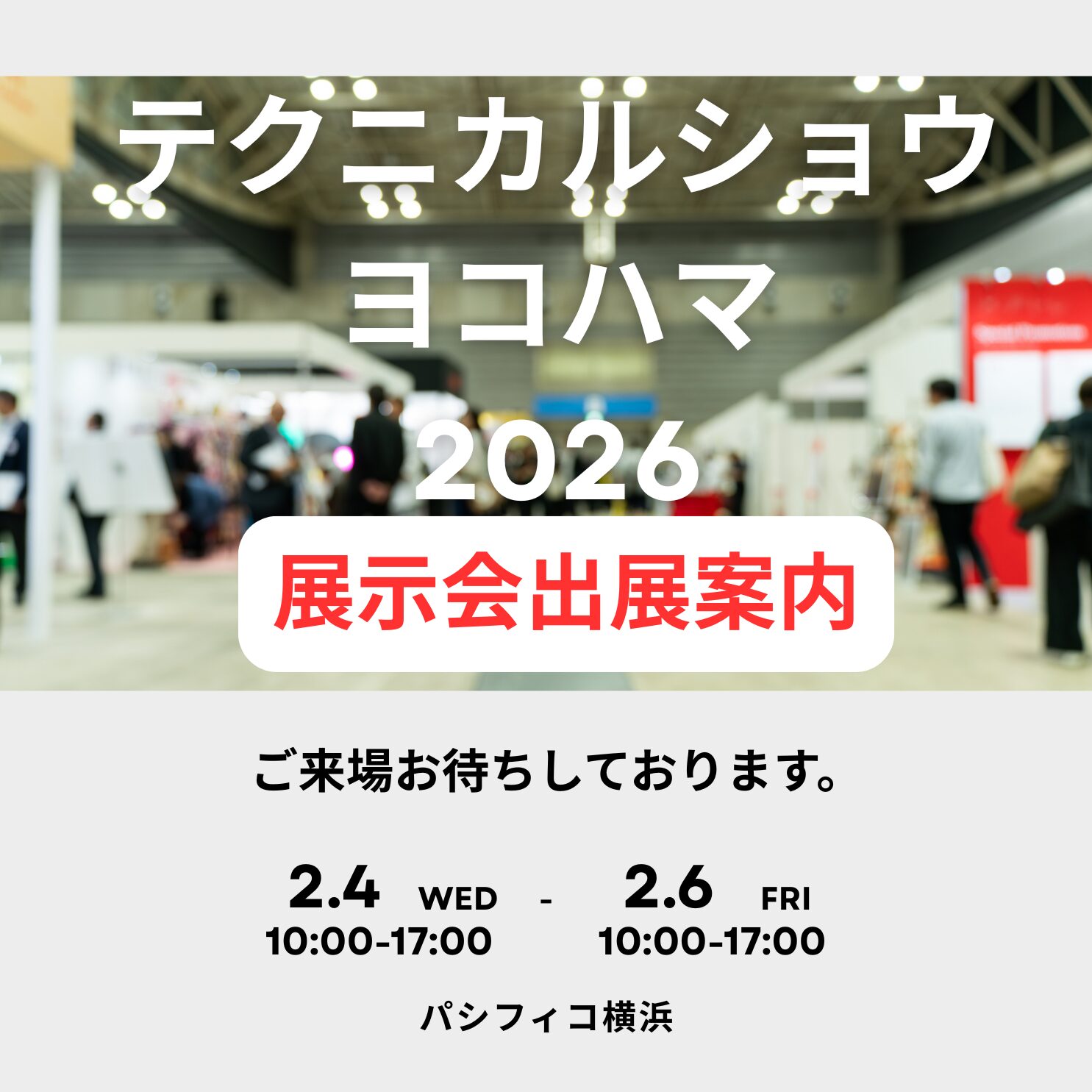 テクニカルショウヨコハマ 2026 出展のお知らせ株式会社野口製作所は、2026年2月4日(水)~6日(金)にパシフィコ横浜で開催される「テクニカルショウヨコハマ2026」に出展いたします。展示会サイト:技術を創る未来を創る|テクニカルショウヨコハマ2026株式会社野口製作所は、「テクニカルショウヨコハマ2026(第47回工業技術見本市)」に出展いたします。本展示会は、首都圏最大級の工業技術・製品…